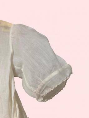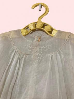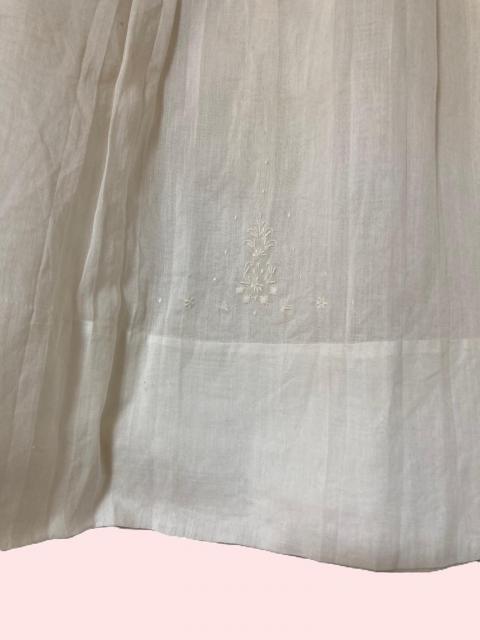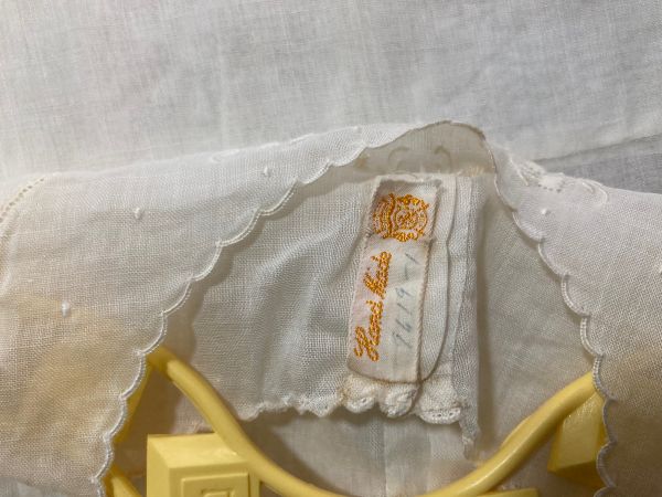 アンティーク べビードレスホワイト、胸元、裾中央に可愛い刺繍がされています。、とっても可愛くてオシャレなベビーアンティークドレスです。黄色の可愛いプラスティックハンガー付き。